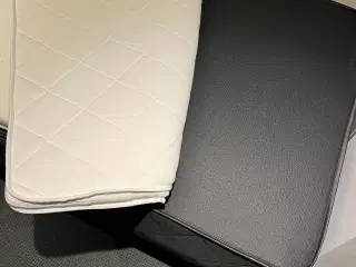Rammen passer til madras 180x200 el. 2 madrasser 90x200 ( kan medfølge, betræk er nyvasket) Sengen er i massivt fyr og hvid lud med brugs mærker. Med monteret hovedgærde er højden 85.