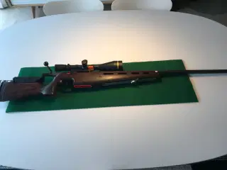Flot Shultz og Larsen Victory, med Grade 3 skæfte. 6,5x55, med gevind til lyddæmper 14/1. Pibelængde 52 cm. Diameter 16 mm. Har kun skudt få skud. Med rail skinne. Sælges uden kikkert og montage.