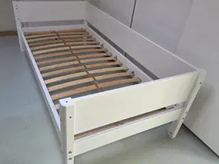 HELT NY højseng, kun pakket ud af kassen, endestykker er samlet. Meget pæn kvalitets seng i hvidmalet fyrretræ. Der medfølger naturligvis kvittering og 2 års garanti. Nypris 3414kr, sælges for 2800kr. Befinder sig i Hjørring.