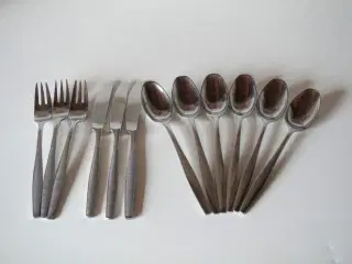 Piil 77 Rustfrit stål gafler fra 1951. Designet af Aage Halvig Hansen. 4 gafler 189 mm, 3 fra Amefa og 1 fra DFA, pr. stk. 25 kr. Meget få brugsspor. (Pil)