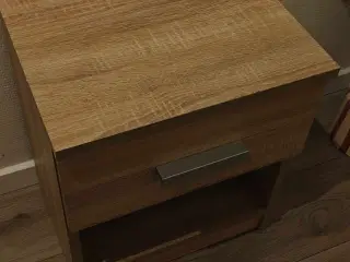 Sengeborde, natborde, vintage. Sengebord med skuffe mål: 45,5 cm bred bagest, 32 cm dyb, 49 cm høj bagest og 45 cm høj forrest. Sengebord uden skuffe mål: 43 cm høj, 50 cm bred og 34 cm dyb. I alt 300 kr. for begge 2.