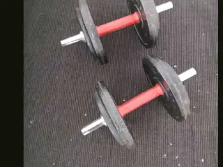 Næsten ny Trænings Bænk og en 25 kg vægtstang består af stang og 4 skiver 5 kg