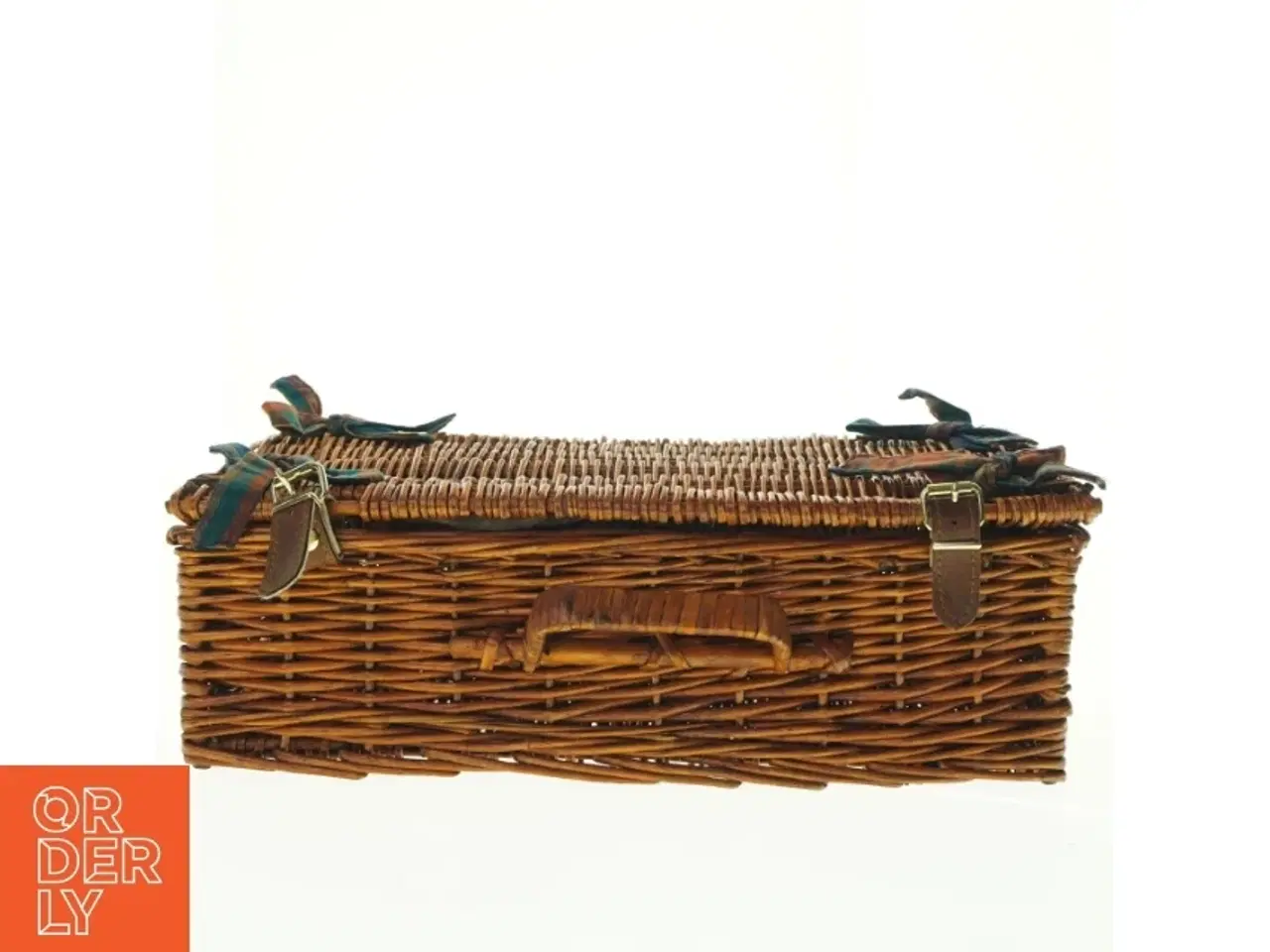 Fletkurv kuffert med låg og læderdetaljer, til picnic (str. Niogtredve x, 21 x 12 cm)