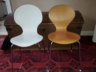 Fine og stabile i stel med grønt velour betræk(få pletter på) og Alm brugsspor på “stellet” stolene er i mahogni