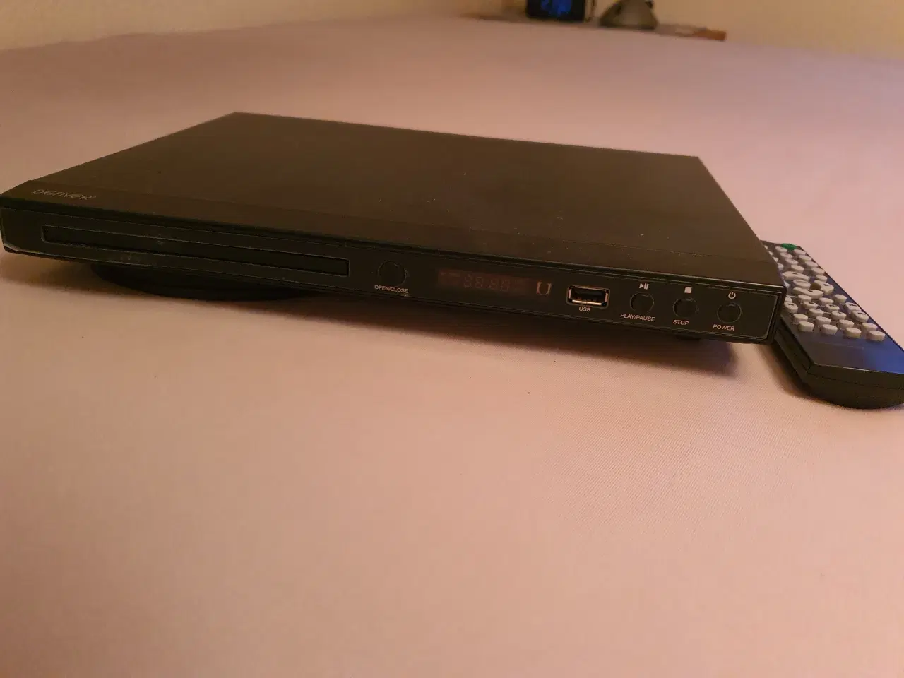 DVD afspiller med fjernbetjening. Tilsluttes med SCART-forbindelse