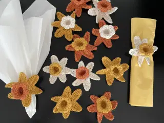 Hæklet påskepynt klar til at blive hængt på grene Harerne koster 4 kr pr stk Kurvene koster 6 kr pr stk Ved køb af alle 6 kurve og 36 harer er prisen 125 kr Se også min anden annonce med hæklede påskeliljer