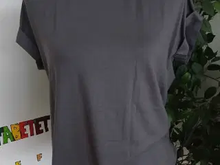 371. Denne meleret mørkegrå T-shirt har en rund halsudskæring og korte ærmer med opsmøg. Den er designet med en afslappet pasform, der giver en behagelig og alsidig stil. Perfekt til hverdagsbrug er i 75% viskose 20% polyester & 5%Elastane Bryst 100cm Længde 58cm Sender med dao GLS eller bring Se også al det andet tøj jeg har til salg