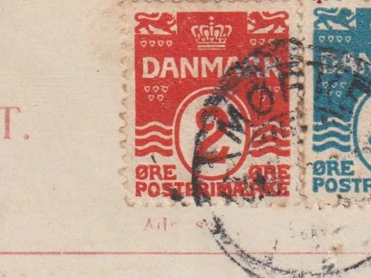 Gammel beskrevfet postkort forsynet med 2 frimærker 2 og 4 øres Se foto