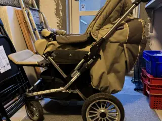 Emmaljunga Super Nitro 1.0 Vi sælger vores Emmaljunga Super Nitro 1.0 klapvogn. Vi har været så begejstrede for denne vogn, og primært at alle hjul er punkterfri, og at forhjulene kan rotere, hvilket gør det nemt at bevæge sig rundt. Der medfølger Emmaljunga regnslag. Klapvognen har indbygget insektnet og solskærm, og ryglænet kan nemt lægges ned så barnet kan sove i vognen. Indkøbsnettets knapper er blevet irrede, så den er derfor bundet fast til stellet i stedet (Dette kan ses på billedet). Den virker fint, men kan nemt skiftes selv, og ØnskeBørn i Aalborg siger at en ny kan købes til 600 DKK. Regnslaget har vi repareret med tape. (Dette kan ses på billedet) Emmaljunga Super Nitro 1.0 nypris: 6.000,- Emmaljunga regnslag nypris: 500,- Info fra Babysams hjemmeside: Hvorfor vælge Super Nitro? Fantastisk allround vogn til byen og offroad. Store aftagelige drejbare forhjul. Stel i højstyrke letvægtstål for lav vægt, komfort og styrke. Inkl. sol-og insektnet. Super Nitro er en fantastisk allroundvogn, der snor sig let gennem byen samtidig med, at den kan klare mere ujævn terræn og sne med de store, solide, drejelige forhjul. Vognen er meget smal (kun 57 cm), så den kan nemt komme ind i elevatorer, S-tog, letbaner og metro. Stellet og hjulene er stærke og kraftige. Det gør Super Nitro til en vinder såvel i storbyen som på lange offroad-ture i alt slags vejr. På trods af vognens ret små ydre mål er klapvognsdelen stor, 90 cm lang og 32 cm bred, de samme mål, som de øvrige vogne fra Emmaljunga. Nyhed! nu med aftagelige drejbare forhjul. Klapvognsdelen kan vendes så du kan vælge, om barnet skal se mod dig eller fremad. Samlet nypris: 6.500, - Samlet pris: 1.500,- Fra røg- og dyrefrit hjem.