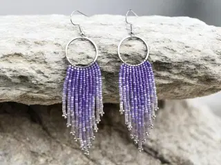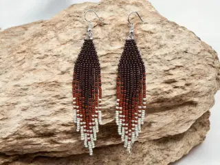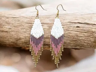 Grønlandske Øreringe Unika, Håndlavede Lavet med kvalitetsmaterialer. Sølvbelagt messing og japanske miyuki delica perler De måler ca: 6x2 cm Nuancer af Rosa, nougat, hvid og Sølv perler 100% allergivenlige/nikkelfri Jeg laver også smykker på bestilling i ønskede farver mm. Se mine andre annoncer for flere smykker
