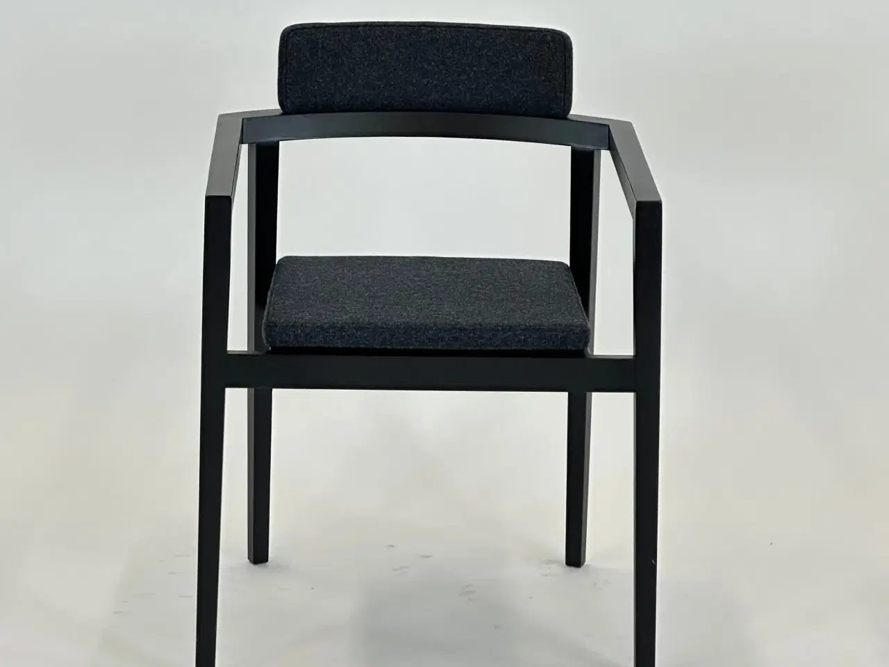 Magnus Olesen Session Chair – Elegant og Funktionel Stol til Mødelokaler og KantinerMagnus Olesen Session Chair er en tidløs og raffineret stol, der kombinerer skandinavisk minimalisme med komfort og funktionalitet. Med sin slanke ramme og behagelige polstring er den perfekt til mødelokaler, kantiner og loungeområder, hvor både æstetik og komfort er i fokus.Design og MaterialerSæde & ryg: Polstret med slidstærkt sort tekstil, der giver høj komfort og et eksklusivt look.Stel: Massivt sortlakeret træ, der sikrer stabilitet og lang levetid.Armlæn: Elegant og funktionelt designet til at give optimal støtte.EgenskaberErgonomisk siddekomfort: Designet med et let tilbagelænet ryglæn og behagelig polstring.Tidløst design: Passer perfekt ind i moderne kontor- og kantinemiljøer.Holdbar konstruktion: Skabt til professionelt brug med slidstærke materialer.AnvendelsesmulighederMødelokaler: En elegant stol, der sikrer komfort under lange møder.Kantiner & caféområder: Perfekt til spise- og fællesområder med stil.Lounge & reception: Ideel til venteområder og afslappende arbejdszoner.Med sin kombination af komfort, funktionalitet og stilrent design er Session Chair det oplagte valg til ethvert moderne kontormiljø eller fællesområde.Denne stol er købt som en del af et restsalg og repræsenterer derfor en unik kombination af bæredygtighed og design. Du får en stol i høj kvalitet, samtidig med at du reducerer miljøpåvirkningen ved at støtte en cirkulær økonomi inden for møbelindustrien.
