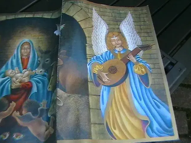 Ældre dekorative tryk, billede/løber eller ? L: 56,5 cm. H:28 cm. 20,- kr. + porto. Sender gerne. Har flere annoncer med bl.a. ældre påskepynt og Julepynt.