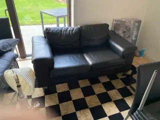 2 prs. sofa, sort læder, siddehøjde 42 cm. bøg. Fejler intet, velholdt, men skal sælges da der skal være plads til noget større. Skal hentes i Lindved v. Vejle.