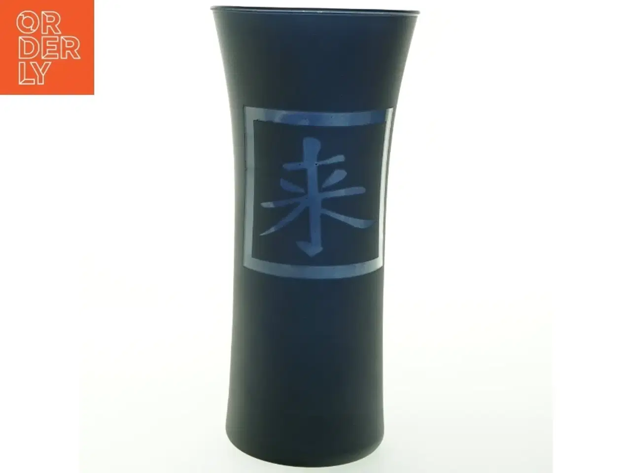 Sort vase med asiatisk tegn (str. H. 27 cm. ø. 12,5 cm)