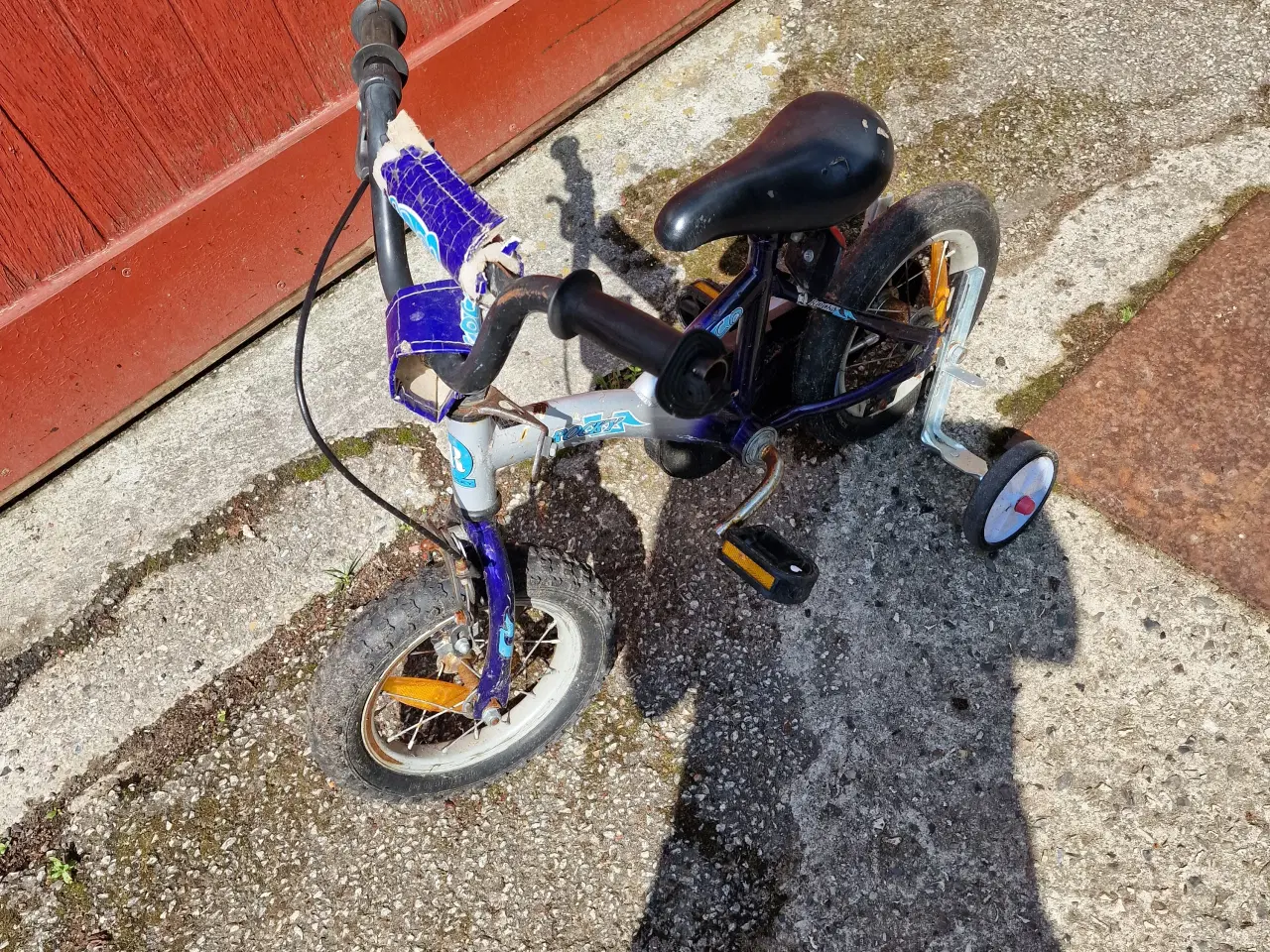 Drengecykel ROCKY med støtteben håndbremse foran fodbremse bagpå sadelhøjden kan indstilles til benlængde fra 40cm til 50cm målt fra lysken til fodballen stelstørrelse 22cm hjulstørrelse 8tommer absolut fast pris kan ikke forhandles skal afhentes i 8260 Viby J Jylland hvhskur