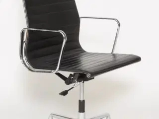 Arne Jacobsen (1902-1971). Kontorstol 'Syveren', betrukket med sort læder, drejelig fempasfod af forkromet stål på hjul, højdejusterbar med gaspatron. Formgivet 1955. Fremstillet hos Fritz Hansen, model 3117. Kr.5.995,- Kan leveres mod betaling af fragten.
