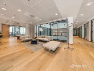 - Nyopført kontordomicil på 7.636 m² i Carlsberg Byen - Plads til ca. 436 arbejdspladser - Parkeringskælder under ejendommen og få min. gang til Carlsberg St. - DGNB-Guld certificeret og energiklasse A2015 **Bykvarter med masser af liv og sjæl** Fra lobbyen, som har adresse fra Ny Carlsberg Vej, har man direkte adgang til husets kontoretager enten via den smukt indrettede trappe i terrazzo eller elevator. Kontorerne er fleksibelt indrettet med mulighed for store åbne kontorarealer, samt mindre aflukkede kontorer. Mødelokaler og anretterkøkken på alle etager. Fantastisk vue over byen, som især kan nydes fra en af de to tagterrasser, der eksklusivt hører til kontordomicilet. Lejemålets energimærke er angivet til: A2015