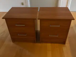 ELEGANT SENGEBORD MED MODERNE UDTRYK Giv soveværelset et løft med sengebordet fra Max Home. Det moderne design kombinerer sort stel med en varm brun overflade i trælook, så møblet passer ind i både minimalistiske og hyggelige hjem. De to rummelige skuffer holder natlæsebriller, bøger og småting organiseret, så du får en rolig start og afslutning på dagen. PRAKTISK OG NEMT I HVERDAGEN Bordet er fremstillet i jern og MDF-træ og leveres med monteringsanvisning, så du hurtigt kan komme i gang. Med en maks. belastning på 11 kg og kompakte mål på 40 × 52 × 30 cm får du en pladsbesparende løsning, der fungerer perfekt som sengebord, lille sidebord eller opbevaring i entréen.