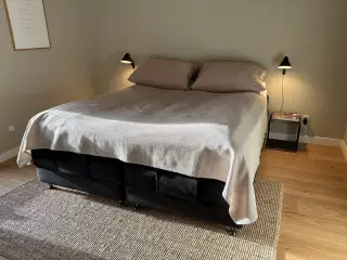 HEMNES seng fra IKEA, inklusiv springmadras. Sengen er et par år gammel, og har selvfølgelig derfor lidt brugsspor. Der er nogle mærker hist og her, men intet der gør noget ved sengens funktionalitet - på det punkt fejler den intet. Se billeder for diverse mærker. Nypris alt i alt for sengestel, madras og lamelbunde har været omkring 8.500kr Mål: 200x160 Sengen står skilt ad, og er meget simpel at samle igen. Realistiske bud er velkomne.