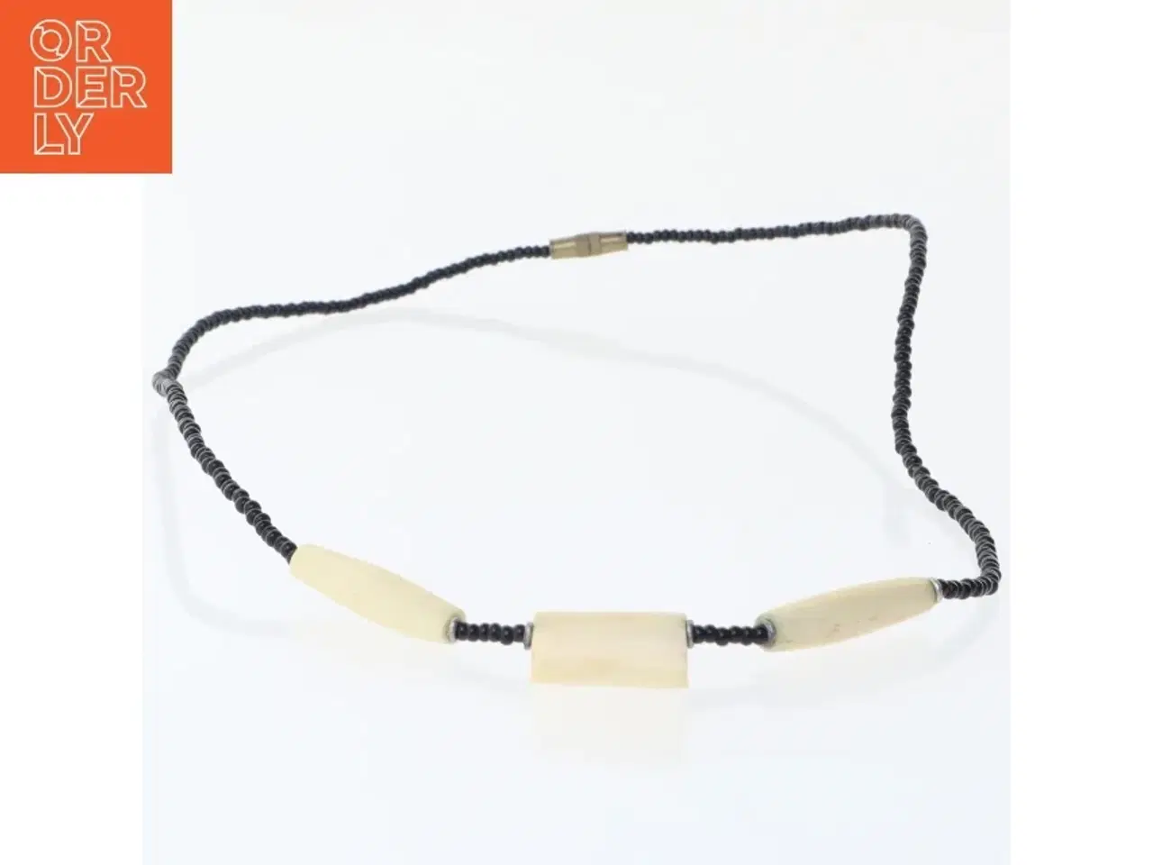 Klik på 'Se annoncen hos forhandleren' for at se varen i vores webshop Halskæde i sort med små sorte perler. I midten er der tre beige perler, der er større; to ovale og en firkantet. Halskæden har en metalspænde som lukningsmekanisme. En klassisk og enkel accessory passende til forskellige outfits. Brand: Ukendt Farve: sort Stand: 40 - Synligt slid fra almindelig brug (Se billeder) Vi sender til hele landet for 49 kr. Leveringstiden er 1-3 hverdage. Du kan også gratis hente den på vores lager på Industrivej 10 i Slangerup. Er du i tvivl om varen stadig er til salg? Klik på knappen "Se annoncen hos forhandleren" for at se den i vores webshop. Kan du se den der, er den stadig til salg Orderly er en ny måde at købe brugt på. Vi har alle vores sælgeres ting på vores centrale lager. Derfor kan du være helt sikker på at få dine ting - og du kan samle flere ting på tværs af sælgere og kun betale én gang fragt.