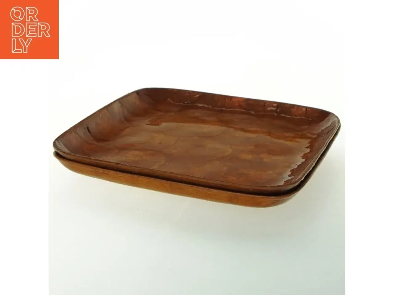 Klik på 'Se annoncen hos forhandleren' for at se varen i vores webshop To små fade i brunt med en skinnende glasur overflade. Fadene har en firkantet form med afrundede hjørner og en smal kant rundt om. Der er synlige brugsspor såsom ridser på overfladen. Brand: Ukendt Farve: Brun Stand: 60 - Varen har mindre spor fra almindelig brug (Se billeder) Vi sender til hele landet for 49 kr. Leveringstiden er 1-3 hverdage. Du kan også gratis hente den på vores lager på Industrivej 10 i Slangerup. Er du i tvivl om varen stadig er til salg? Klik på knappen "Se annoncen hos forhandleren" for at se den i vores webshop. Kan du se den der, er den stadig til salg Orderly er en ny måde at købe brugt på. Vi har alle vores sælgeres ting på vores centrale lager. Derfor kan du være helt sikker på at få dine ting - og du kan samle flere ting på tværs af sælgere og kun betale én gang fragt.