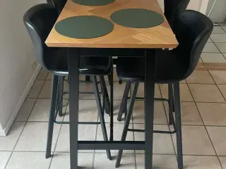 Spisebord fra IKEA med 2 tillægsplader og 5 x Komfort kantinestole sæt. Nypris 1500 for bordet og 500 kr. Per stol. Benene på bordet kan skrues af for nem transport. Sættet har lidt slid og to af kantinestolene har behov for lidt maling, men ellers i god stand.