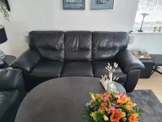 3 personers sofa + 2 lænestole i stof grå m/hvide striber.