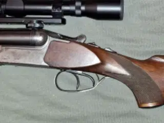 Fortuna Suhl Drilling i kaliber 2x16/70 og 7x57R fra 1963. Der er tale om en drilling fra Fortuna Suhl med Q1-stempel, som forbeholdtes varer fra DDR, der var ment til enten eksport til Vesten eller køb af eliteklassen i det gamle DDR. Drillingen har været med på mange jagter igennem årene og tilsvarende er der mange brugsspor, især på forskæftet. Bruneringen er silkemat og stadig intakt. Løbene er trods alderen spejlblanke. Skæftet er et kontinentalt skæfte med tysk kindpude (Deutsche Backe) og der er original bakelit-bagkappe og bakelit-pistolkappen på grebet. Med drillingen følger et kikkertsigte fra Zeiss, et Diavari-Z 2,5-10x52 med trådkors 4, som gør, at drillingen kan bruges til både drivjagt er og ansitz-/pürschjagt. Der er ikke belyst trådkors i kikkertsigtet. Kikkertsigtet er monteret i en Suhler Einhakmontage (SEM) med montage fra tyske AKAH og kan nemt tages af og på uden at man mister indskydningen. Når kikkertsigtet er sat på, er det stadig muligt at skyde med korn og kærv. Kærven vipper op, når kugleløbet vælges. Der er sidesikring på drillingen. Drillingen har en tysk snelle, som har en aftræksvægt på ca 200gr. Løbelængde: 61cm Skaftelængde: 36cm Totallængde: 103cm Prisen er på forhandlingsbasis omkring de 12.500 kroner og KUN SERIØSE BUD besvares. Jagttegn og gyldig våbentilladelse påkræves inden personlig afhentning i Næstved. Våbenet kan ses på med øjne og hænder i Næstved efter aftale.