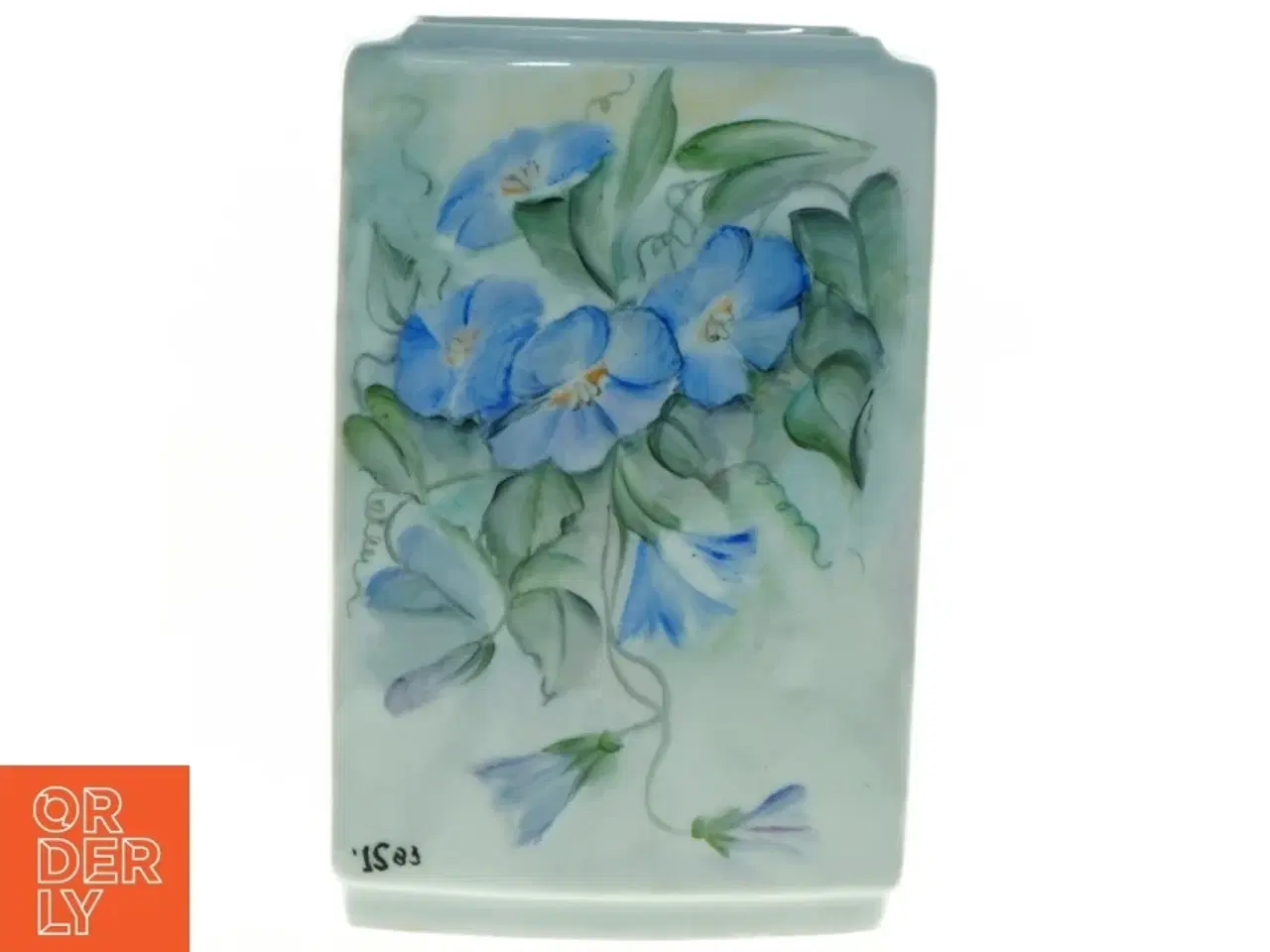 Håndmalet Blomsterdekoreret vase med blå snerler (str. 19 x, 12 x 5 cm)