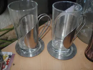 2 stk. flotte vinglas med blå kant - måske mexicansk brugskunst. Flotte glas, der også kan bruges til pynt. Retro. De er 17 cm høje og diameter på 8 cm Prisen er for dem begge samlet.