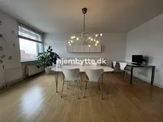 Dette er en annonce for lejlighedsbytte, hvor du bytter din lejebolig med en anden lejebolig. Jeg har en skøn og meget lys 4 værelses lejlighed med den mest fantastiske udsigt over Peblinge Dosseringen. Lejligheden er på ca. 115 kvm, men føles større. Det er oprindeligt en 5 værelses. Jeg slog to rum sammen til en større stue, da jeg flyttede ind og det kan man sagtens genetablere, hvis det ønskes. Lejligheden indeholder stor fordelingsgang, forholdsvis stort badeværelse, åbent køkken i forbindelse med stuen, soveværelse samt to mindre rum. Der var to toiletter da jeg flyttede ind og det ene har jeg lavet om til vaskerum. Huslejen er på 9025 kr. + 289 kr. i antenneafgift og 1350 kr. i varme. (har dog fået penge de sidste 3 år). Jeg elsker min nuværende lejlighed og flytter kun for at komme end i husleje, da jeg ikke har brug for al den plads. Jeg ønsker mig en lys lejlighed med husleje på max 6000 kr. alt inklusiv. Minimum 65 kvm. (2,5 værelser). Der skal helst være tilladelse til at holde kat. Prioriteres højt: altan eller adgang til have, karbad og meget gerne med en god udsigt/beliggenhed som min nuværende lejlighed. Foretrukne områder: området omkring søerne, indre Frederiksberg, Kbh. K, Islands Brygge, Østerbro, Christianshavn og måske lidt nord for Kbh.