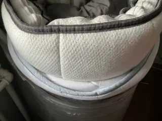 Lækker topmadras, stadig i original indpakning. Opbygget af memoryfoam og kølende gel for god støtte og søvn. Antiskrid-dutter på bagsiden af betrækket. Venstre side af billede nr. 2 viser dens tvilling. Jeg fik bare aldrig taget begge i brug, så nu sælges den ubrugte. Fra røgfrit hjem. Madras i samme serie sælges også. Se min anden annonce.