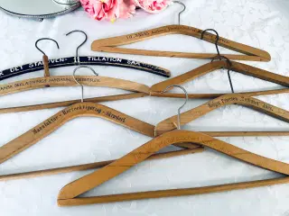 Gamle, vintage bøjler. Sælges kun samlet. Prisen er for alle. Fast pris. Kan sendes med gls til pakkeshop for 47 kr. eller dao for 47 kr. Man kan betale igennem Gul og gratis’s handelssystem eller man kan betale med MobilePay. - 4 stk. gamle, vintage bøjler - træ - med gammel skrift - med patina - skæv indretning - med brugspor - de fire bøjler er ikke ens - fine til indretning - fine til sommerhus og kolonihave hus