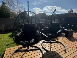 Fine lænestole med god sidekomfort til haven. Medfølger to skamler og et lille bord. Samt to hynder, som dog ikke er købt til stolene men fungerer fint. Der er en lille ubetydelig skade på det ene armlæn, se billede. De er lavet af aluminium så de vejer ingenting og ruster ikke.