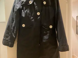 Flot næsten ubrugt varm jakke i farvet læder med hvide pelskanter. Lækker detaljer. Kan indsnøres i taljen