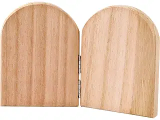 Sammenklappeligt spejl i plast. Bordmodel, der kan stå. 1 stk., H: 18 cm, B: 16 cm. 1 stk.
