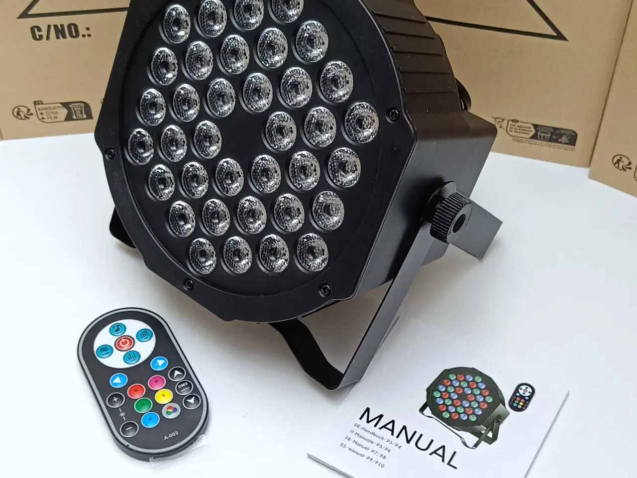 NY! 36 RGB LED Diskolys + Fjernbetjening + DMX