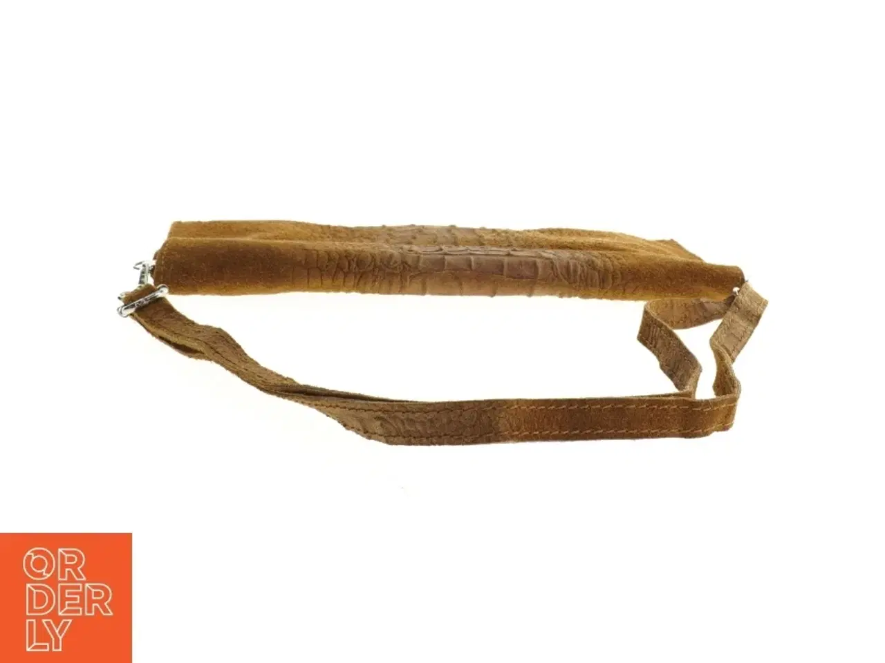 Brun skuldertaske i ruskind med krokodillepræg (str. 30,5 x 16 cm)