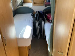Særdeles velholdt Kabe campingvogn – helårsvogn med masser af udstyr og komfort Medfølgende ekstraudstyr Isabella Capri Coal fortelt med CarbonX-stænger IsaFix låsebeslag Kant-syede gulvtæpper (indv.) Gardiner (Indv. Samt fortelt) Kabe campingvogne er kendt for deres høje kvalitet, solide konstruktion og fremragende isolering. Denne vogn er ingen undtagelse og egner sig perfekt til helårsbrug samt længere ophold off-grid, hvor komfort og driftssikkerhed er vigtigt. Campingvognen fremstår meget velholdt, og alt fungerer – ingen defekter eller skader. Den er 100% røg- og dyrefri, indregistreret, forsikret og klar til omgående overtagelse. Generelle oplysninger Første registrering: 04/2004 Seneste omregistrering: 05/2022 Egenvægt: 1.200 kg Lasteevne: 300 kg Totalvægt: 1.500 kg Nummerplade: EZ1185 Komfortabel indretning Campingvognen har en rummelig og praktisk planløsning, der giver god komfort til både korte ture og længere ophold. Fransk dobbeltseng med lamelbund, springmadras og topmadras Stor rundsiddegruppe med hæve-/sænkebord Kassette- og rullegardiner God skabsplads og opbevaringsmulighede Vognen er udstyret med Alde centralvarme og vandbåren gulvvarme, som sikrer en behagelig temperatur året rundt. Varmeanlægget kan køre på både gas og 220V, hvilket giver stor fleksibilitet. Køkken, bad og toilet 3 gasblus 180 liters køleskab med separat fryser (gas / 12V / 220V) Emhætte og gasbageovn Toiletrum med kassettetoilet Bruser samt brusemulighed ved håndvask El og energiløsninger Vognen er velegnet til længere ophold uden fast strøm. Centralt lysanlæg med lysdæmper og stemningsbelysning Spots ved siddegruppe og seng Solcelleanlæg med MPPT-inverter 180 Ah batteri 12V omformer DAB+ radio og TV-antenne Udvendigt 230V stik, TV-udtag og cigartænderstik Udvendigt udstyr Heki tagluger med myggenet Truma mover (nem manøvrering) Alufælge Støddæmpere og påløbsbremse Enkeltaksel med stabilisator Seitz S7 rammevinduer Ski-/opbevaringslem Cykelholder til 2 cykler