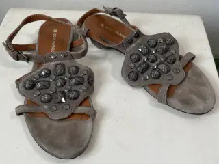 Superflotte sandaler med ankelrem og plateau - ikke brugt Den indvendige længde er 24 cm, hælen er 6,5 cm høj, plateau er 2,8 cm, det bredeste sted er 8 cm Bud fra kr 300 plus porto Afhentning: København, Østerbro