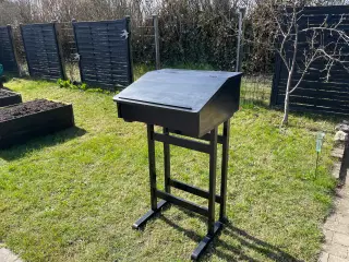 Gammel skolebord med fast bænk til 2 børn i afsyret eg