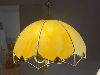 Loftlampe i metal med dekorative glasdetaljer. Lampen har en rund form og en kombination af metal og glasmaterialer. Den er designet til ophæng i loftet med en spiralformet ledning. Passer til standard pærefatning. Lampen har en karakteristisk spiralledning. Ny ledning med hejs og fatning. D. 30 cm. H. 17 cm.