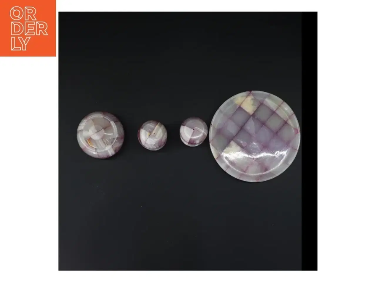 Klik på 'Se annoncen hos forhandleren' for at se varen i vores webshop Smukt sammensat natur onyx marmor krystal sten. Består af fad/tallerken, skål med låg og salt/pebersæt, 5 dele. Er fremstillet af naturmaterialer, så variationer i farve ses. Brand: Ukendt Farve: lilla Stand: 60 - Varen har mindre spor fra almindelig brug (Se billeder) Vi sender til hele landet for 49 kr. Leveringstiden er 1-3 hverdage. Du kan også gratis hente den på vores lager på Industrivej 10 i Slangerup. Er du i tvivl om varen stadig er til salg? Klik på knappen "Se annoncen hos forhandleren" for at se den i vores webshop. Kan du se den der, er den stadig til salg Orderly er en ny måde at købe brugt på. Vi har alle vores sælgeres ting på vores centrale lager. Derfor kan du være helt sikker på at få dine ting - og du kan samle flere ting på tværs af sælgere og kun betale én gang fragt.