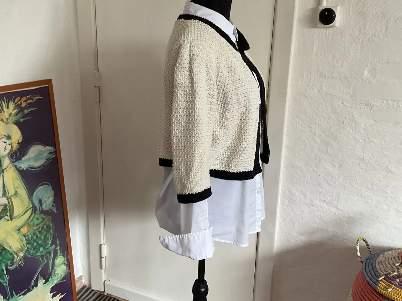 Ny fin Cardigan, i beige/blå, mrk. XITED, str. 38. Fin ny trøje str. S svarende til 38. Mrk. XITED. Brystvide 102 cm. Ny fin Cardigan, i beige/blå, mrk. XITED, str. 38