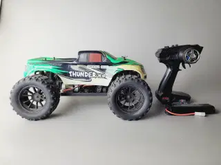 Jeg har denne super lækkere og lynhurtige lidt brugte FG Marder Buggy 1:5 mål længde 640 mm bredde 400mm højde 260 mm RTR RC ZENOAH energies 2WD,Benzin med den originale signatur fra Franz Gröschl på mærkatet og top Zenoah-motor, storvolumen special lav -friktionsstøddæmpere i aluminium og specielle aluminiums motorophæng). Modellen er bygget på et 4 mm vinklet chassis. Alle huller på undersiden er forsænket, så ingen skruehoveder kan stikke ud. Dobbelt bærearm på for- og bagakslen samt 4 store olietrykstøddæmpere sikrer optimal trækkraft. Alle roterende dele er kuglelejer. Bagerste transmissionsgear, differentialegear og alle drivdele er kassehærdede. Modellerne er beskyttet mod snavs nedefra af sidetærskerne. Modellen er udstyret med en kraftig forbrændingsmotor. Den kræver en normal 2-takts benzin-olie blanding (kan købes på alle tankstationer)/ med en tankkapacitet på 0,7 liter opnås en køretid på cirka 45 minutter. Takket være den indbyggede trækstartanordning kan motoren nemt startes uden ekstern hjælp. Ny Karosseri skal man selv købe og ny batteripack skal den have også ellers kører den som en drøm og er en vandvigtig lækker maskine jeg sælger denne super lækkere Top Benzin drevne Fjernstyret Bil til 4000kr