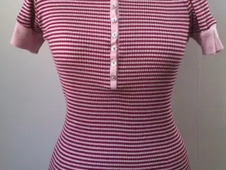 Supersød bluse med snoning fortil - ingen fnuller eller nuller Materiale: 68% bomuld, 22% lurex, 12% uld Mål: Brystvidde: 106 cm Længde: 60 cm Længde fra ærmegab og ned: 39 cm Talje: 100 cm Omkreds forneden: 100 cm Indvendig ærmelængde: 50 cm Fra skuldersøm til skuldersøm: 42 cm Bud fra kr 150 plus porto Afhentning: København, Østerbro