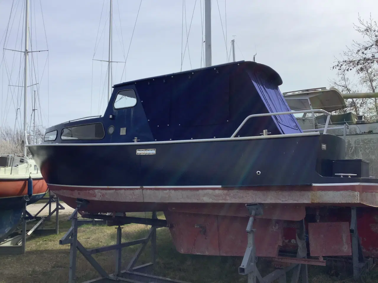 Tiny House/Boat. Peerboom 660 stålbåd 1973, 6,6 mtr. med ferskvandskølet indenbord dieselmotor. Er på land og klargjort til maling. Havneplads i Nykøbing Sjælland. Sammen med båden sælges hus på havnen ca. 8 kvm. med indlagt el. Dejligt samlet “sommersæt” i Nykøbing Sjælland. Samlet pris 60.000,-. Sælges evt. hver for sig. Skriv for yderligere information og billeder.