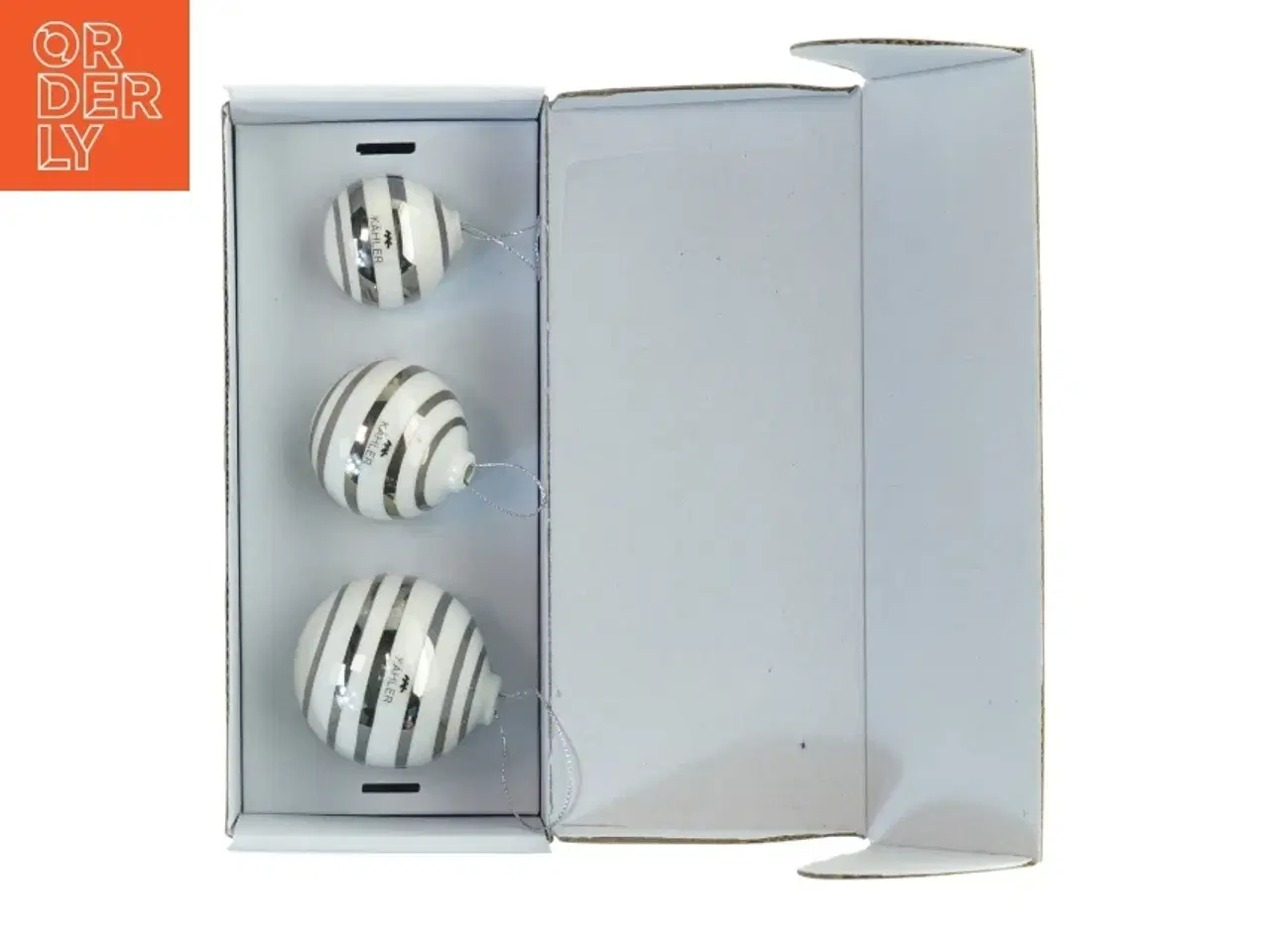 Klik på 'Se annoncen hos forhandleren' for at se varen i vores webshop Sæt af tre dekorative Omaggio julekugler designet af Reckweg og Nordentoft. Julekuglerne er hvid med sølvfarvede striber og kommer i en æske. Kommer fra røgfrit og dyrefrit hjem. Brand: Kähler Farve: Hvid Stand: 80 - Vi sender til hele landet for 49 kr. Leveringstiden er 1-3 hverdage. Du kan også gratis hente den på vores lager på Industrivej 10 i Slangerup. Er du i tvivl om varen stadig er til salg? Klik på knappen "Se annoncen hos forhandleren" for at se den i vores webshop. Kan du se den der, er den stadig til salg Orderly er en ny måde at købe brugt på. Vi har alle vores sælgeres ting på vores centrale lager. Derfor kan du være helt sikker på at få dine ting - og du kan samle flere ting på tværs af sælgere og kun betale én gang fragt.