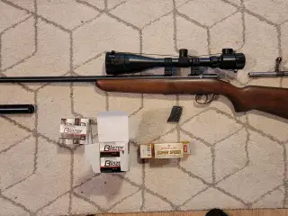Salonriffel Krico kaliber 22 LR med kikkert s.c. Mirakul 4x40 fungere perfekt.