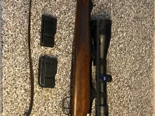 Original SAKO SAFARI. Pistolgrebet er mere ret i forhold til standard modellen for bedre håndtering af rekylen. Kikkerten er monteret for indskydning og medfølger ikke. Riflen sælges med original SAKO Optiloc 30 mm. aftagelig montage. Der medfølger 27 stk. BARNES VOR-TX 300 GR Blyfri ammunition og 17 stk. NORMA Blyholdig ammunition. Sælges grundet køb af 416 Rigby.